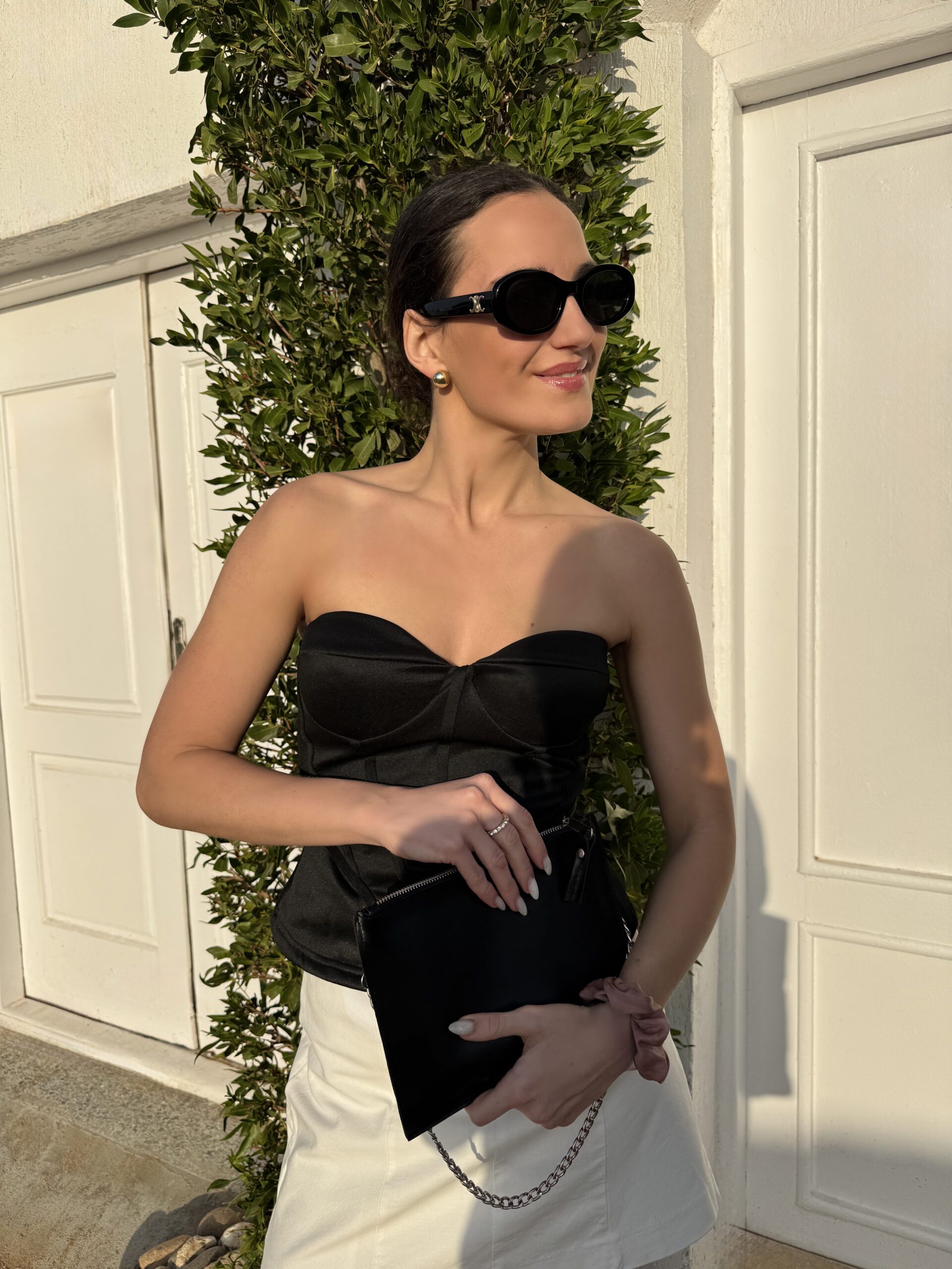 Delninę galima nešioti rankoje arba ant peties, todėl ji puikiai tinka tiek vakarui, tiek miesto įvaizdžiui. Tiesus siluetas leidžia lengvai derinti prie suknelių, kostiumų ar minimalistinių kasdienės aprangos derinių.