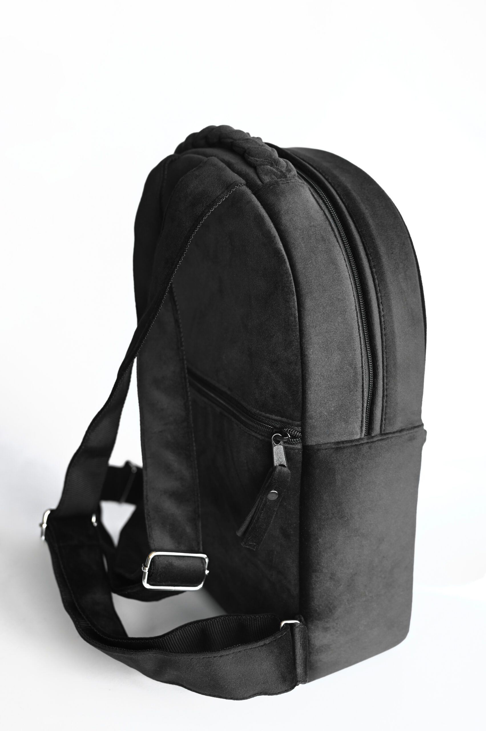 Įsivaizduokite juodą aksomą, kuris apgaubia visą kuprinę, suteikdamas jai nepriekaištingą išvaizdą ir prabangą.