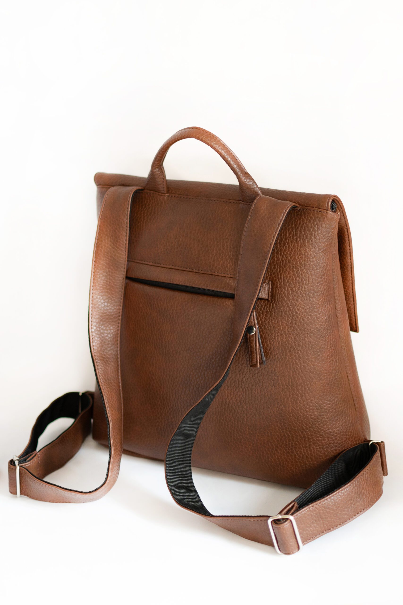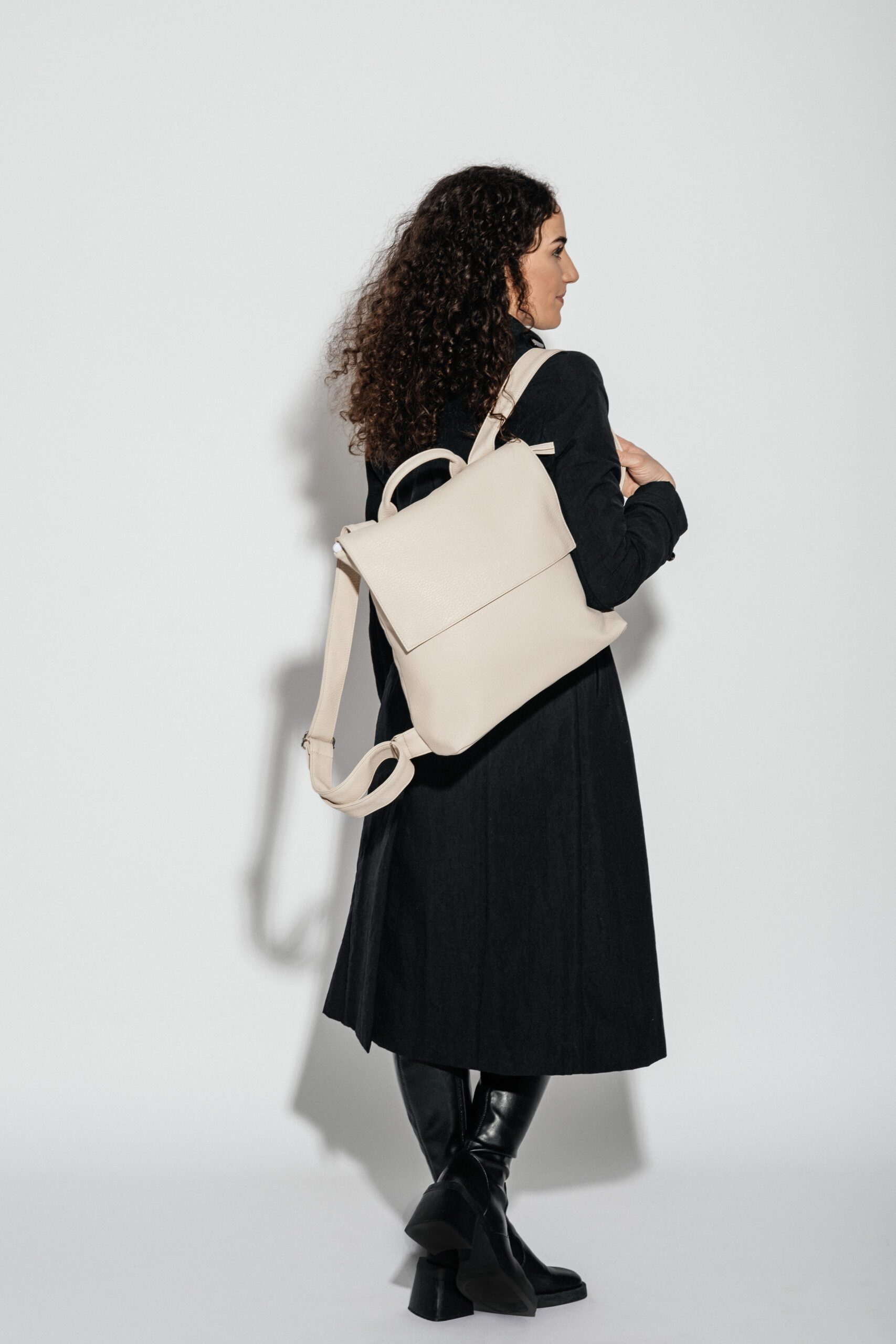 Stilinga keturkampė kuprinė „Elegantiška diena“. Ši kuprinė išsiskiria savo unikaliu dizainu ir funkcionalumu, leidžiančiu nešioti viską, ko reikia kasdienėje rutinoje ar kelionėse.