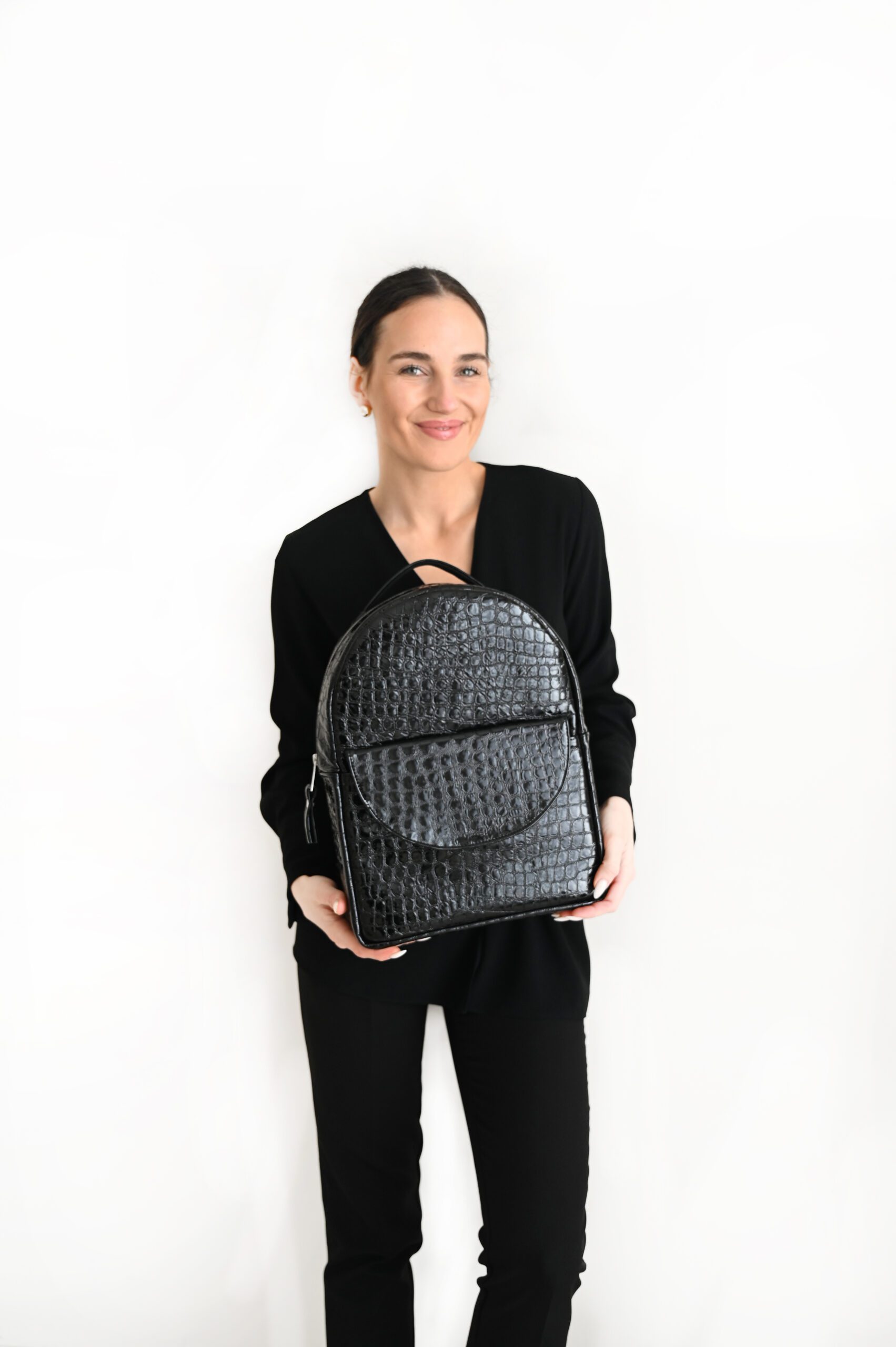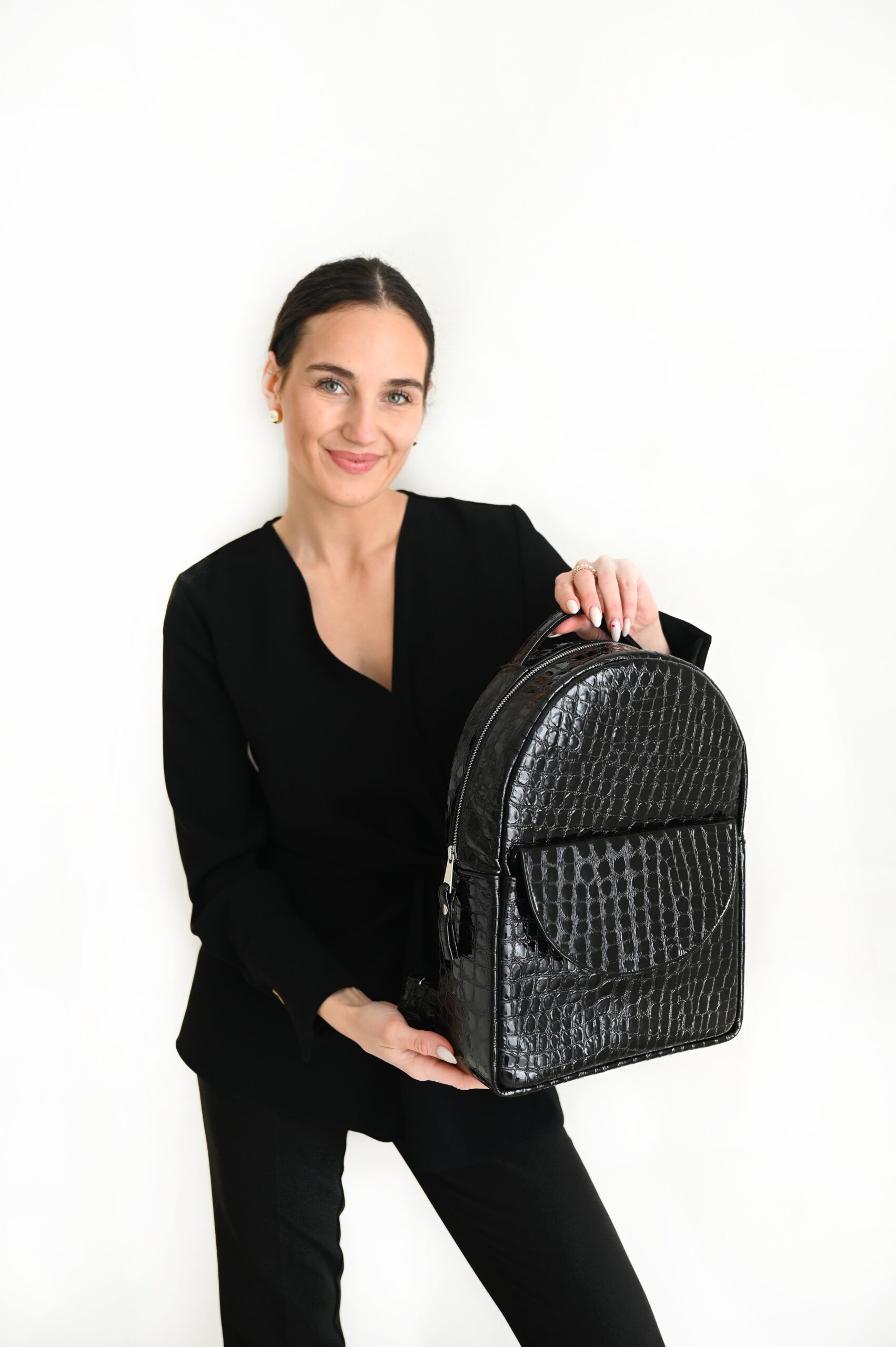 „Prabangos diena“ – tai stilinga ir praktiška kuprinė, puikiai tinkanti tiek kasdieniam nešiojimui, tiek darbui ar kelionėms. Prabangios krokodilo odos tekstūra suteikia jai išskirtinį įvaizdį, o galimybė rinktis natūralią arba veganišką odą leidžia pritaikyti kuprinę pagal savo vertybes ir poreikius.