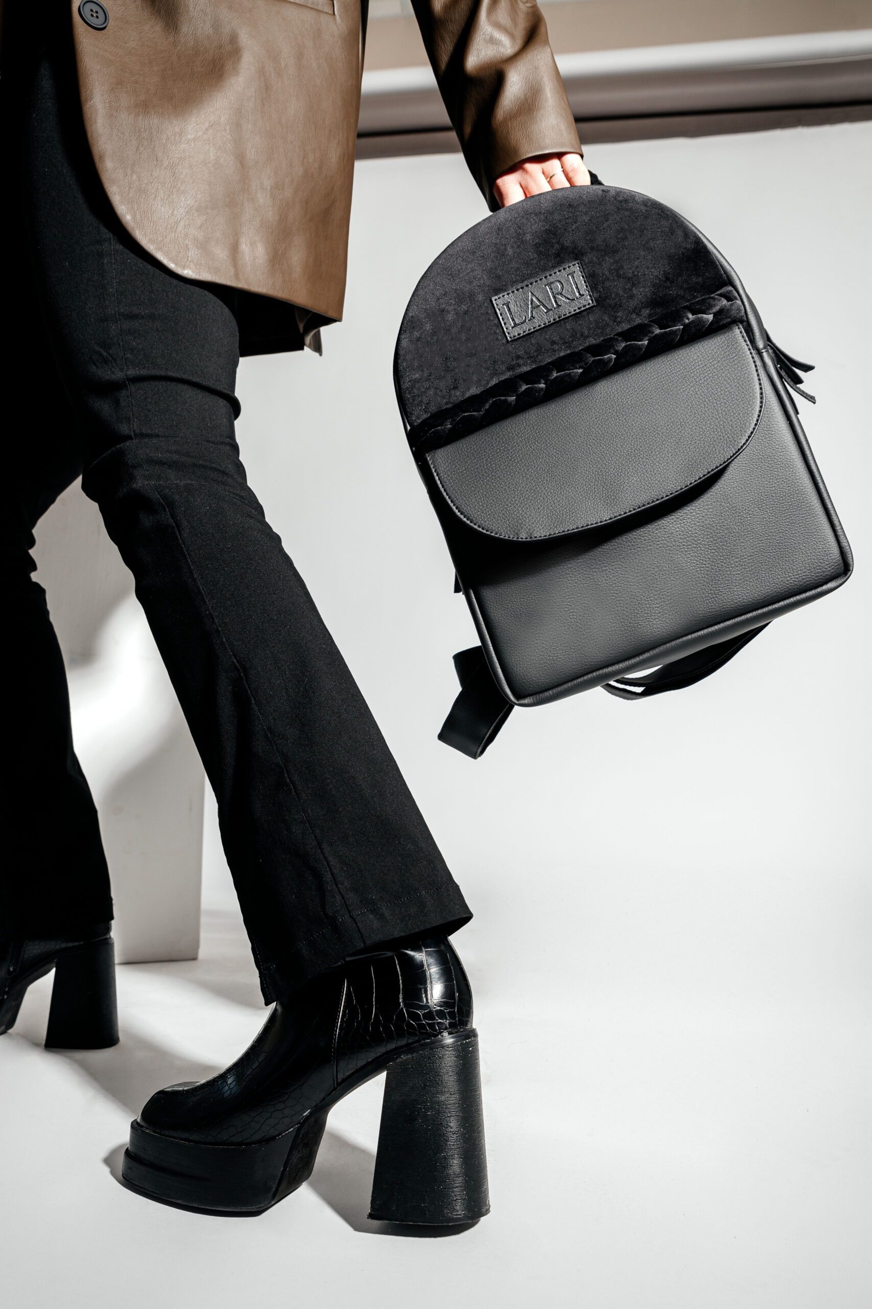 - Rafinuotas dizainas: Kakavinis aksomas ir veganiška oda sukuria nepriekaištingą išvaizdą.